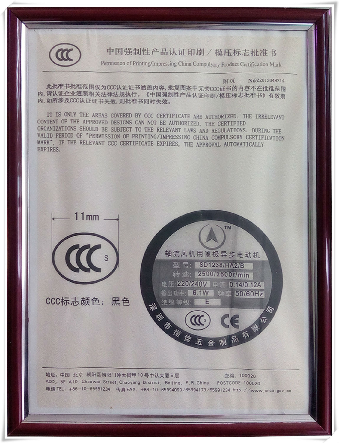 我国直接性产品设备申请认证进行印刷获得许可书